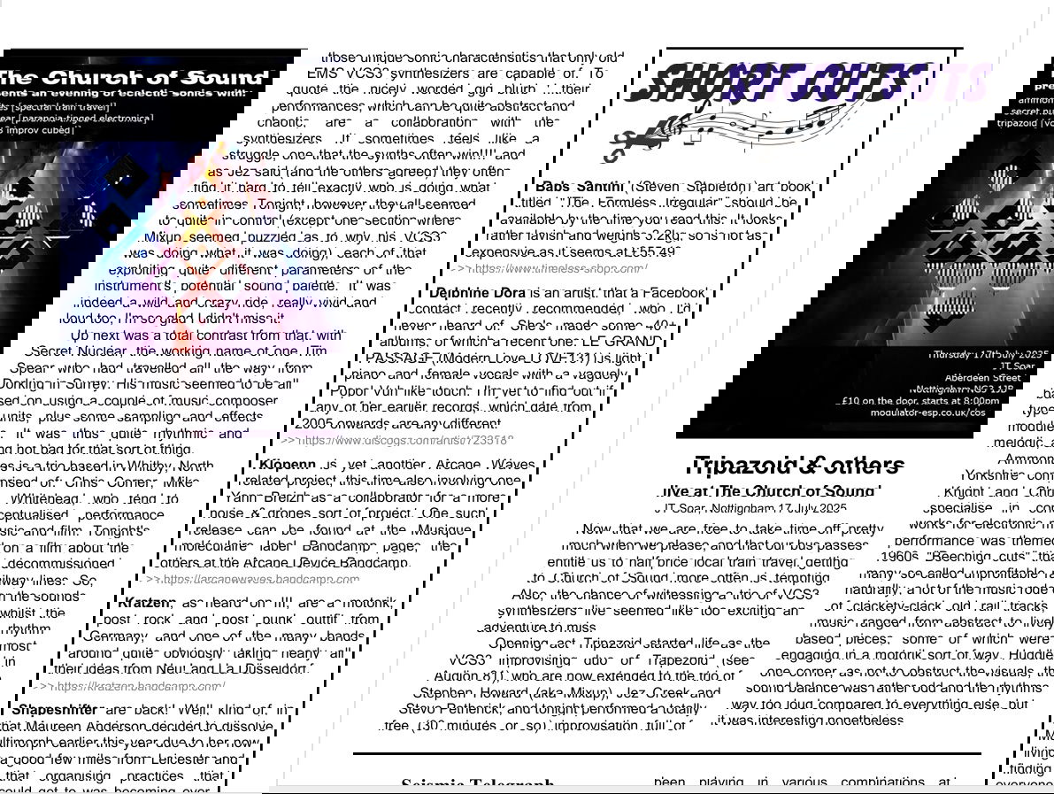 A review of this gig appeared in "Audion" magazine in October, 2025.